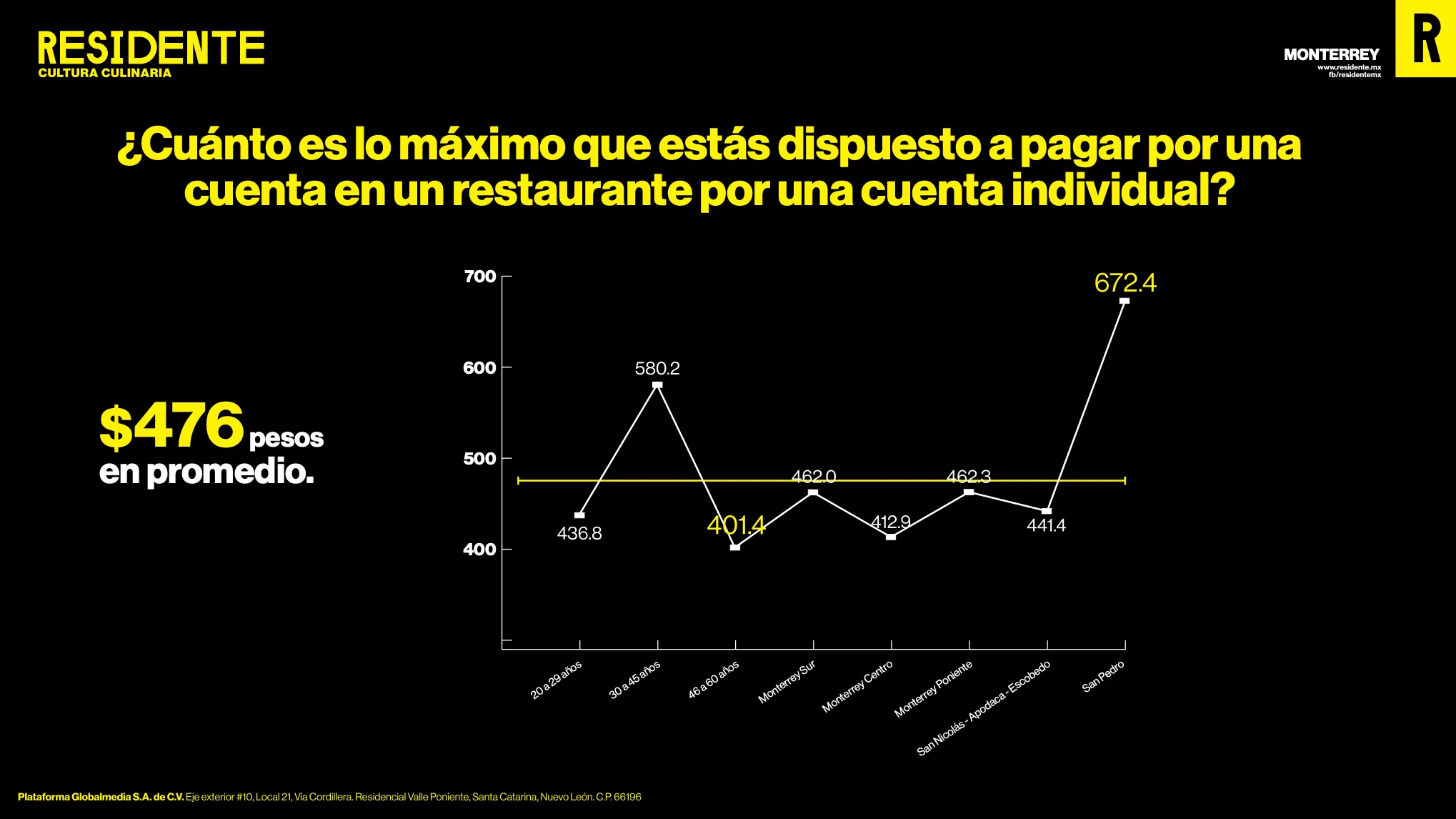 El consumidor regiomontano maneja un umbral de gasto de alrededor de $436 a $672 pesos por una cuenta individual, y entre $1,739.10 y $2,537 pesos por una cuenta familiar. Estos rangos varían según zona y edad, siendo los clientes entre 30 a 45 años y los habitantes de San Pedro los más tolerantes al gasto.