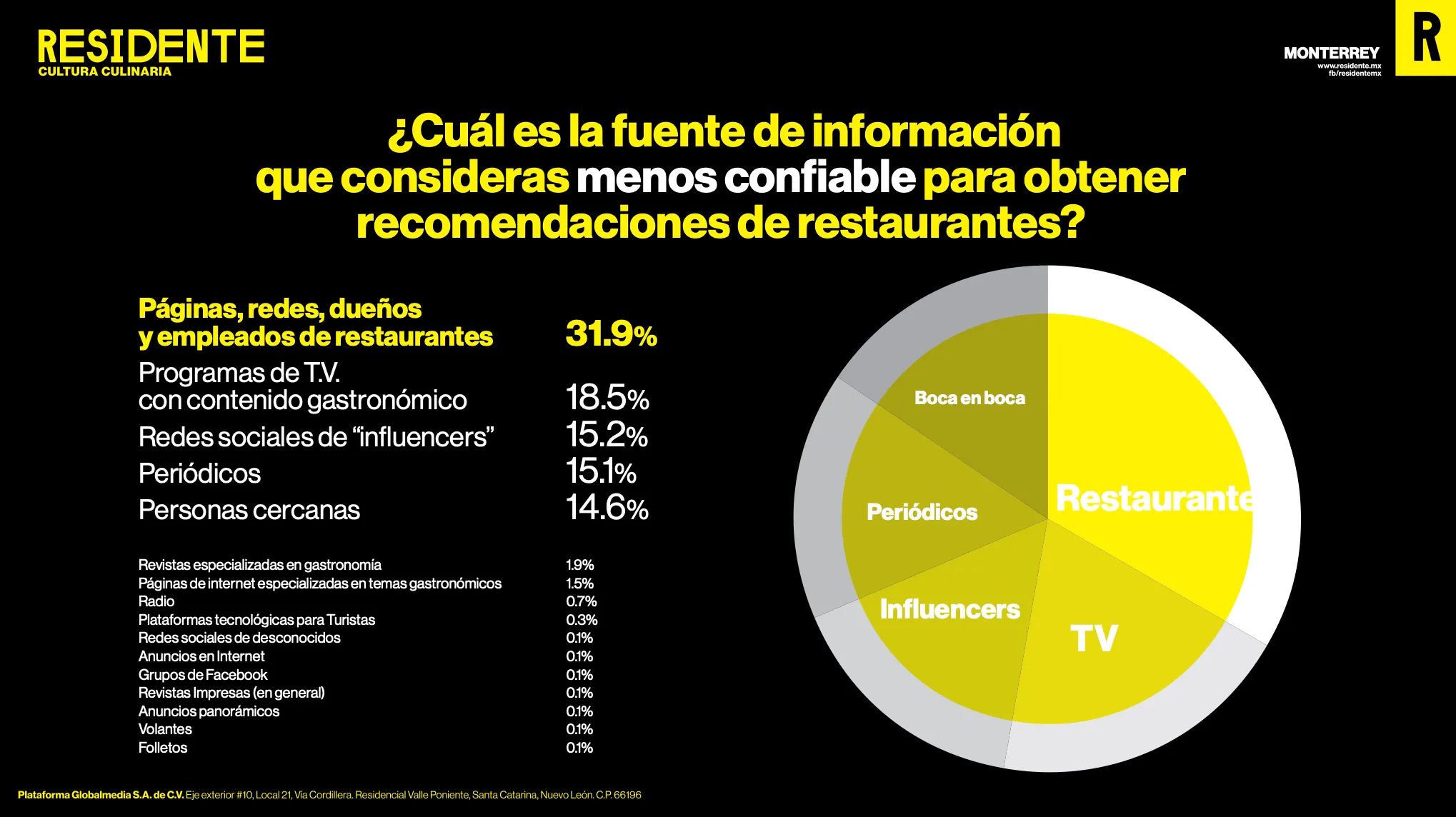 En contraste, el consumidor regiomontano confía más en la experiencia propia y en la recomendación directa de personas cercanas. Esto explica por qué más de la mitad de los encuestados afirma haberse arrepentido de visitar un restaurante por no haberse informado bien antes. Cuando una recomendación genera expectativas que no se cumplen, el impacto negativo en la percepción del restaurante es inmediato.